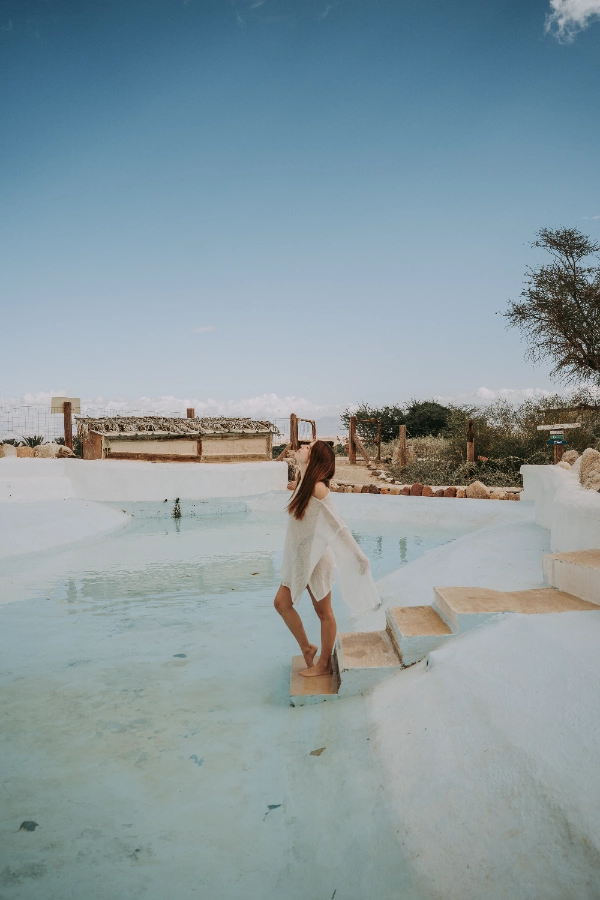 הבריכה המרכזית (פעילה בעונה) צופה אל המרחבים הפתוחים, ומזמינה אתכם להצטנן במים הקרירים באמצע המדבר.